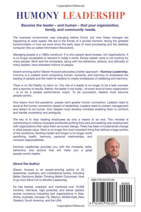 Award-winning author Steven Howard advocates a better approach – Humony Leadership. Humony is a created word comprising human, humanity, and harmony to emphasize the leading of people and the need for leaders to create workplaces of wellbeing and harmony.